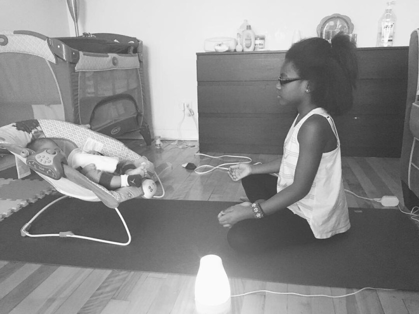 Meditation for us didn’t start out as mediation as first. I mean how can you get a 6-year old (now 9-years) to sit still for 40-minutes without them fidgeting and their mind running rampant? Nearly impossible right?! So what did we do? We dedicated time to what I call “Focused Chats” where we spoke about things such as feelings, thoughts, and how these things influence what we actually do. We would try short periods of silence while being attentive to things we heard or felt in the moment. Following this practice, we would discuss how it made us feel. The creation of a space and opportunity for this practice of focused chatting excited my “mini me” and over time became something she did with no problem. As I introduced formal meditation, it seemed similar to the chats minus the actual speaking. Instead we focused on things such as our breathing, what we heard, and simply enjoyed being silent, still, and relaxed. We started out with our morning Mommy and Me Meditation where Bree would meditate for 7-minutes and then excuse herself if needed. Sometimes I’d be surprised to find that she was sitting still next to me when I opened my eyes. She has since told me that meditation takes her to a good place. I continue to teach her that if we are able to calm our minds (one of the most powerful things in our body) we are able to clear it. This in turn will lead us to better thoughts and behavior following meditation which is what we should strive for to help better ourselves. As mature as this sounds, my daughter grasped it!