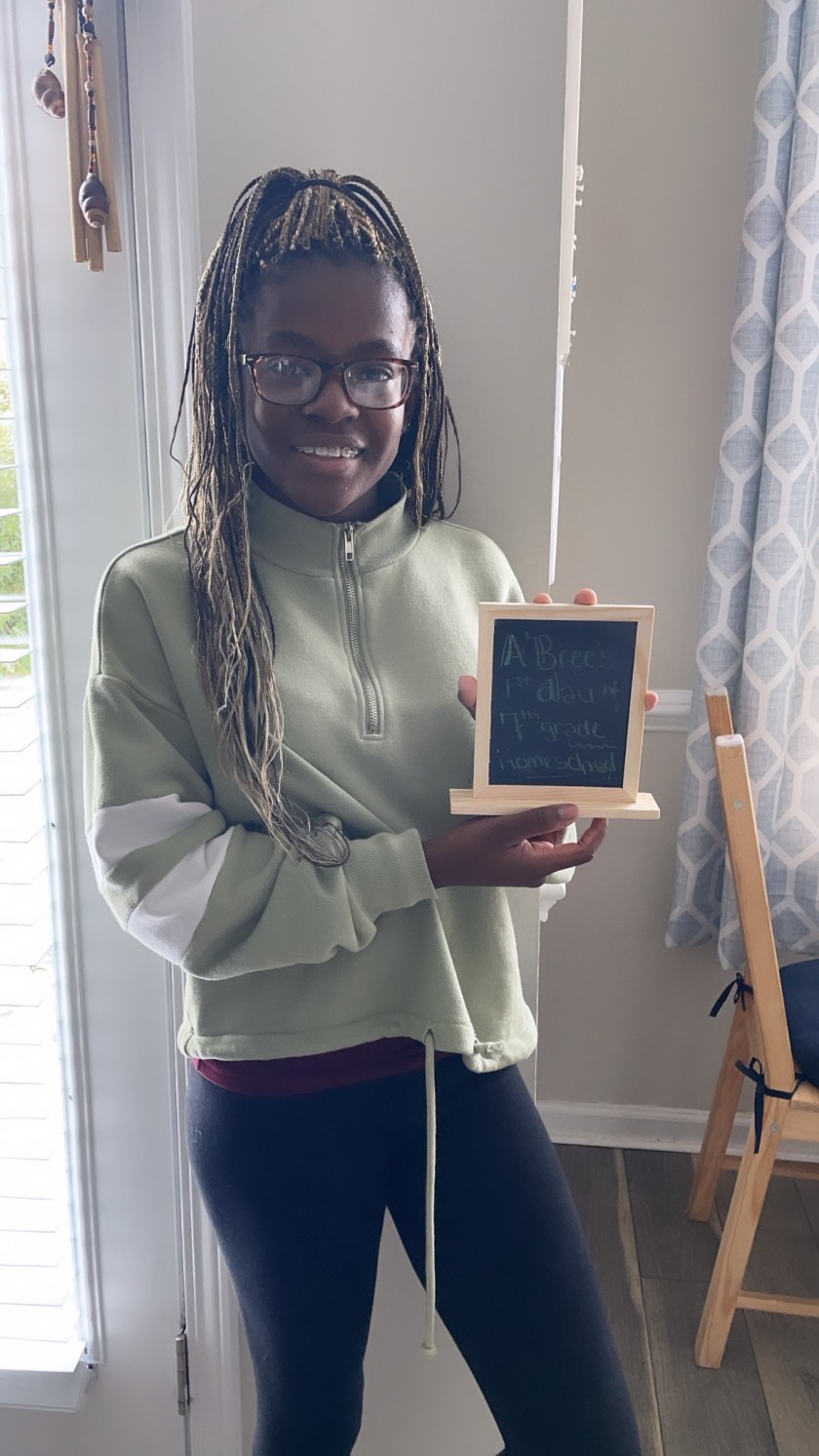 A’Bree’s (12) first day of 7th grade and A’Brahm’s (3) first day of pre-k, homeschool edition, August 2021